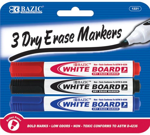 BAZIC Asst. Color Bullet Tip Dry-Erase Marker (3/Pack)