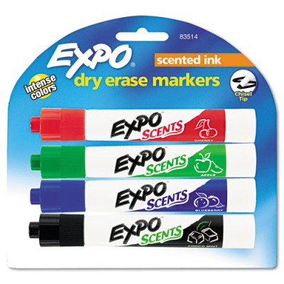 Scented Whiteboard Marker,Chisel,4/ST,ChocMint/Chr/Apple/Bry - Chisel Tip, Assorted Colors, 4/PK(sold in packs of 3) Feature