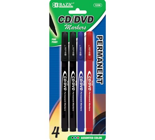 Bazic CD/DVD Permanent Marker, Assorted Colors, 4 per Pack (Case of 24) Review